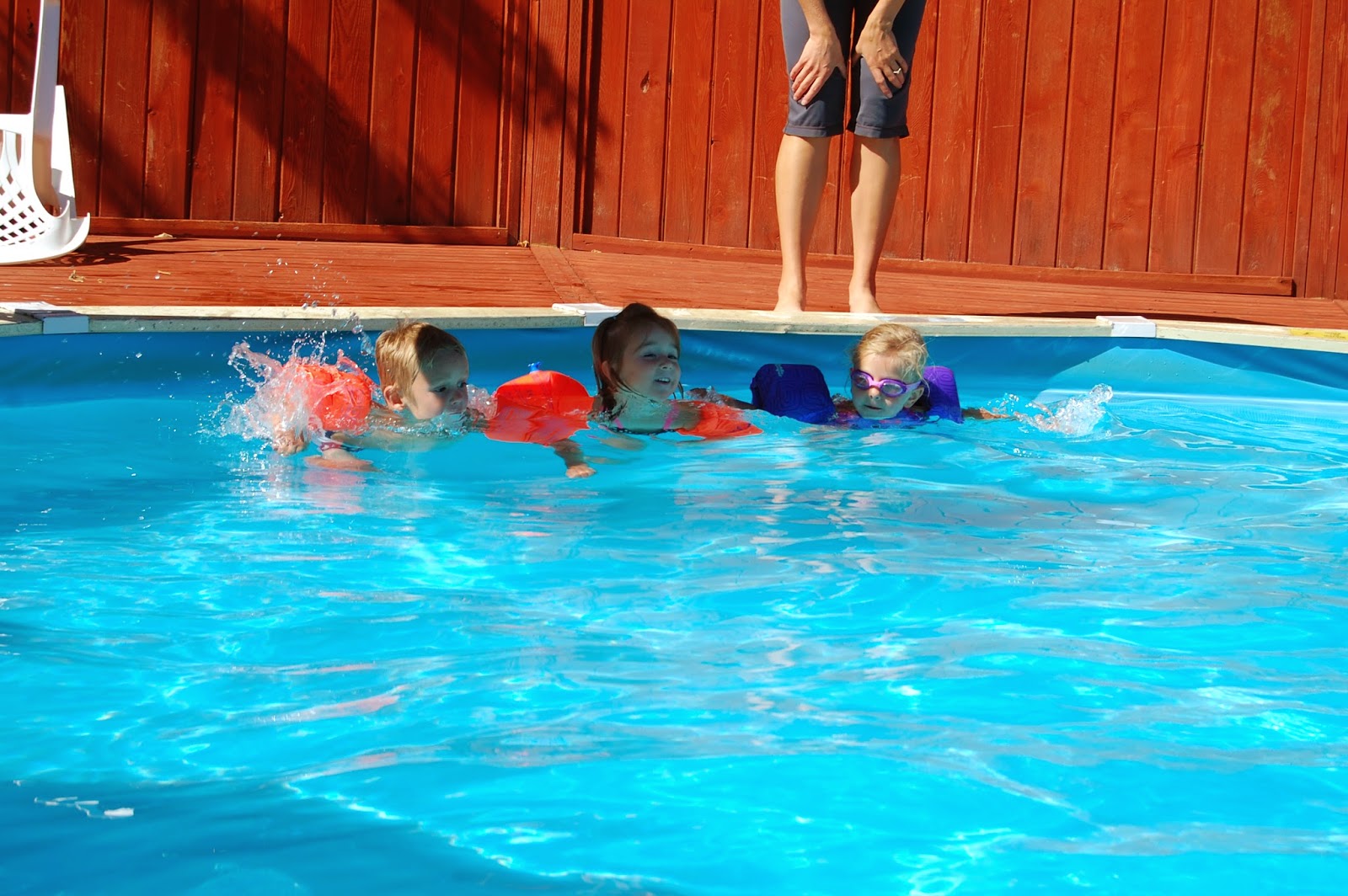 We begin with a strenuous swim in a friend's pool. The kids do half their age, rounded up in laps: